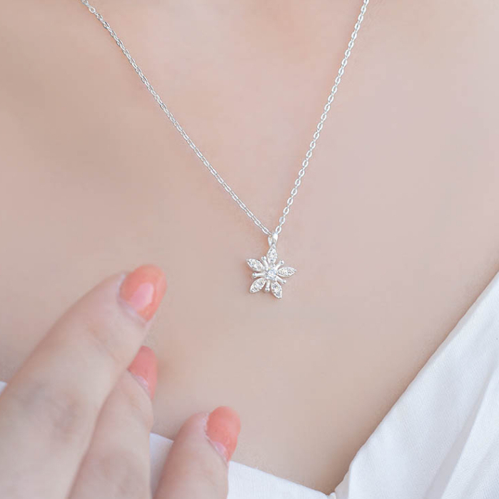 Dây chuyền nữ bạc S925 vòng cổ bạc nữ hình bông tuyết đính đá Snowflakes